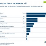 Die Deutschen, das zeigen die Ergebnisse, haben ihr Mobilitätsverhalten krisenbedingt verändert: Knapp die Hälfte (48 Prozent) der Bevölkerung unternimmt in diesem Jahr weniger Reisen, 40 Prozent verzichten gänzlich auf Auslandsreisen und 39 Prozent auf Flugreisen. Der Mobilitätsradius hat sich im Krisenjahr verringert, wovon vor allem das Fahrrad profitiert: Der Anteil der Bevölkerung, der täglich das Fahrrad nutzt, ist gegenüber 2019 von 17 auf 22 Prozent angestiegen. Und diese Verhaltensänderung möchten die Deutschen auch beibehalten: Während sie sich in Bezug auf Flugreisen eine schnelle Rückkehr zur alten Normalität wünschen – nur 10 Prozent der Befragten wollen auch nach Corona keine Flugreisen mehr unternehmen –, möchten 27 Prozent der Deutschen nach der Krise weiterhin öfter mit dem Fahrrad fahren.