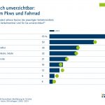 Der Pkw bleibt dennoch der Deutschen beliebtestes Fortbewegungsmittel: 9 von 10 Befragten nutzen regelmäßig einen Pkw, 52 Prozent – und damit genauso viele wie im Vorjahr – nutzen ihn täglich. Entsprechend ziehen drei Viertel (74 Prozent) der Umfrageteilnehmer die Bilanz, dass der Pkw für sie unverzichtbar ist.