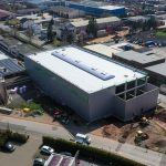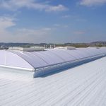 Neben den zwei vertikalen Lichtbändern wurde zudem ein bogenförmiges Lichtband auf dem Hallendach montiert. Dieses ist mit einer „sun protect“-Beschichtung und fünf Rauch- und Wärmeabzugsgeräten ausgestattet, die als Einzelklappen integriert sind.