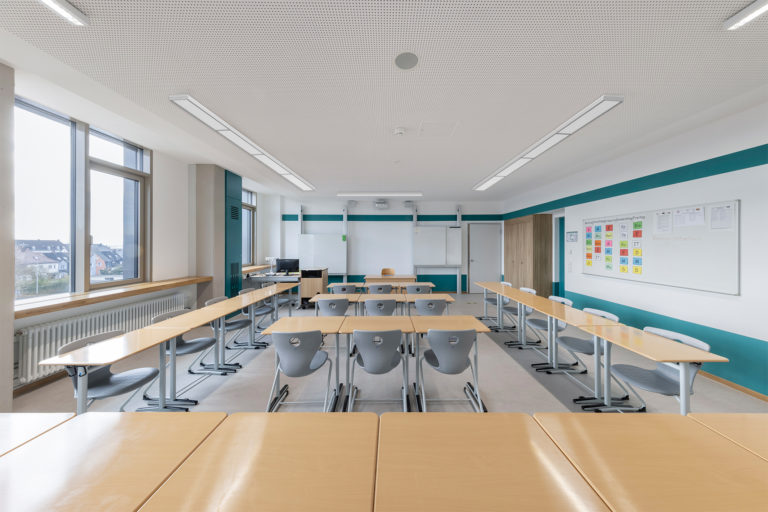 Vielfältig in Form, Farbe und Funktion, ist die Alevo als Anbau-, Pendelleuchte und als Lichtband einsetzbar. Eine gute Entblendung für Bildschirmarbeitsplätze, innovative Lens-Layer-Lichttechnik, flexible Lichtströme von 2700 bis 7000 Lumen und modernes Lichtmanagement zeichnen die effiziente Leuchte aus. Zur Tafelbeleuchtung in Schulen steht ein passender Wandfluter mit asymmetrischer Lichtwirkung zur Verfügung.