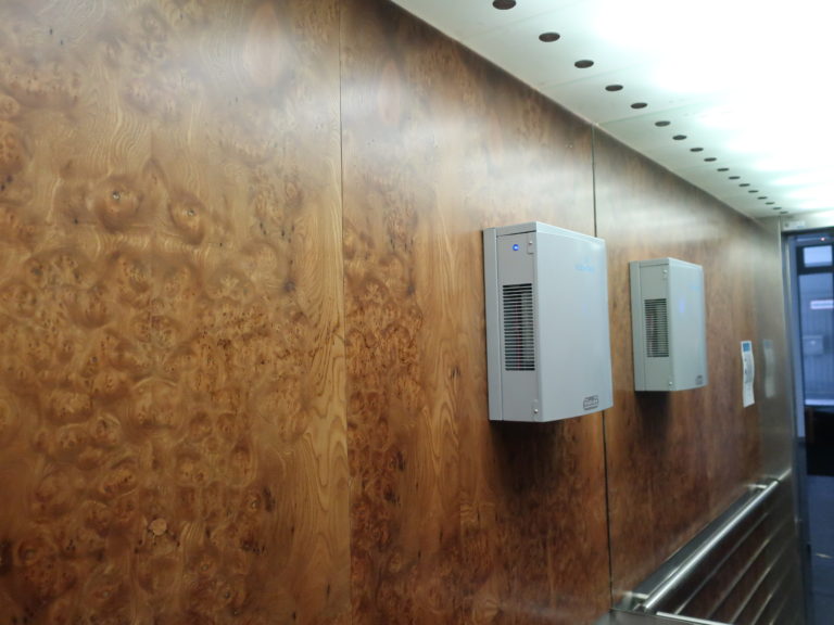 Eine andere Möglichkeit sind Luftreiniger, die mit UV-C-Technologie arbeiten. Dabei wird die Umgebungsluft durch das Gerät angesaugt, isoliert und mit einer hohen Dosis UV-C-Licht, der Ultraviolettstrahlung-C, bestrahlt. Dabei wird die DNA, der sich in der Luft befindenden Viren und Bakterien zerstört. Das Problem: Es dauert vergleichsweise lange, bis die Luft mit UV-C desinfiziert wird. Daraus resultieren zwei Möglichkeiten der Nutzung: „Man führt die Luft sehr schnell durch das Gerät, dann ist allerdings die Wirksamkeit inakzeptabel. Oder man führt sie langsam durch das Gerät. Dann haben sie die gewünschte Wirkung, es dauert aber viel zu lange, bis die Luft umgeschlagen wurde“, sagt Alexander Wüllner, geschäftsführender Gesellschafter des Liftmanagementunternehmens Hundt Consult. „In einem Aufzug mit einer Standardkabine zwischen 2 und 4 Quadratmetern dauert die Entkeimung per UV-C beispielsweise zwischen 30 Minuten und einer Stunde. Das ist bei der regelmäßigen und hohen Personendichte in Aufzügen einfach zu lang – vor allem, wenn man bedenkt, dass sich Viren bis zu 30 Minuten in der Luft halten können.“