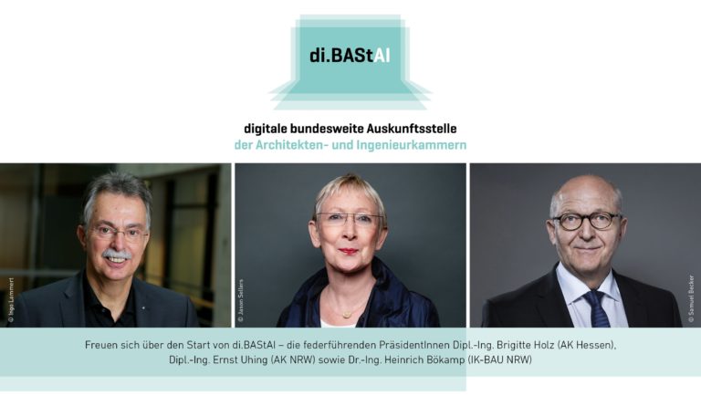 Mit dieser kostenfreien, allein durch die Bauaufsichtsbehörden nutzbaren Datenbank wird die Prüfung der Eintragung in Berufsverzeichnisse und -listen und der daraus abgeleiteten Bauvorlageberechtigung im digitalen Verfahren erheblich erleichtert. Denn die Behörden erhalten ohne Zeit- und Kostenaufwand jederzeit die elektronische Auskunft zum Eintragungsstatus einer Entwurfsverfasserin oder eines Entwurfsverfassers aus den Kammerlisten und -verzeichnissen. Außerdem führt di.BAStAI in Zukunft auch Sonderqualifikationen und Nachweisberechtigungen.