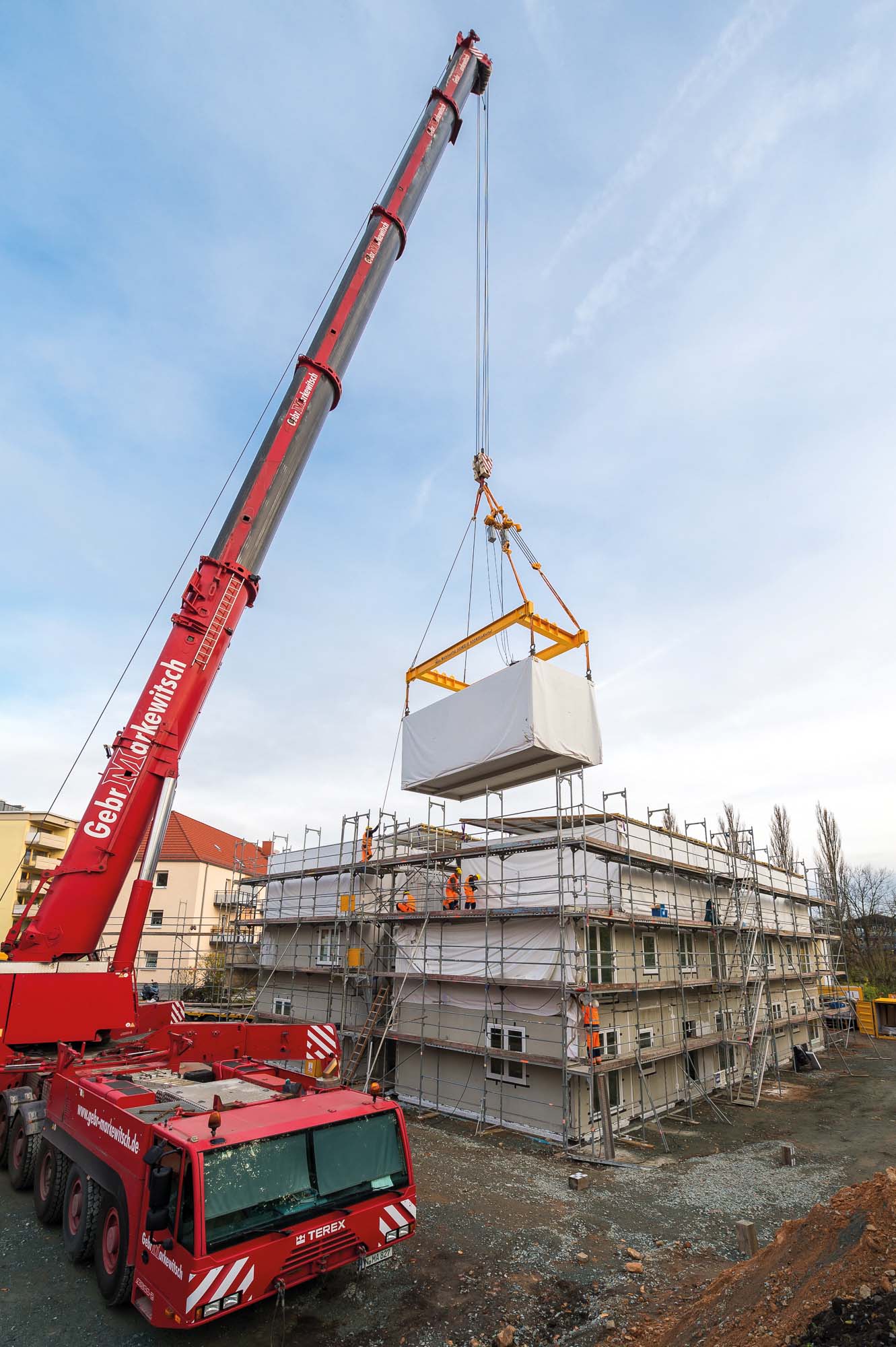 Schnell geht es also, aber das ist noch lang nicht alles. Axel Gedaschko: „Neubau findet heute immer weniger Akzeptanz, weil Neubau bedeutet: in der Nachbarschaft Lärm, Schmutz, Dreck.“ Diese unangenehmen Begleiterscheinungen sind dagegen weitgehend in die Fabrik verbannt bei dieser Art des Wohnungsbaus, die Peggy Fritze treffend mit elementiertes Bauen bezeichnete – denn seriell kann man auch den Plattenbau nennen, bei dem keineswegs komplette Module aus der Fabrik kommen, sondern wo auf der Baustelle Wand für Wand montiert wird; nur eben in großer Serie.