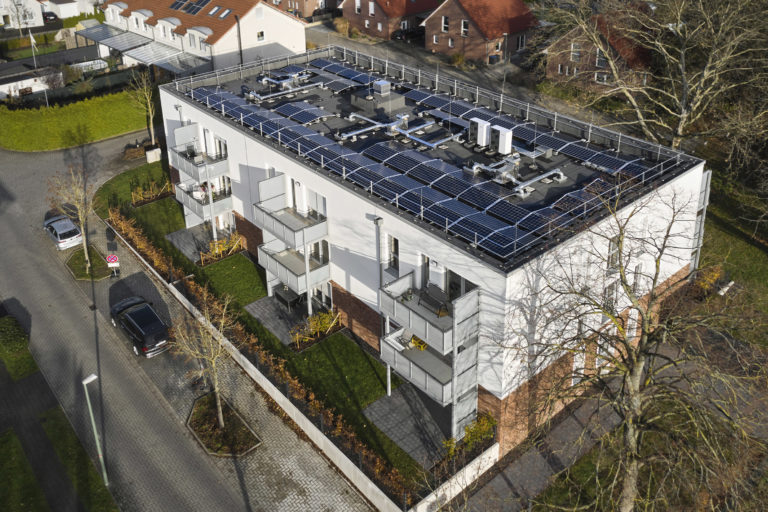 Für das energiepolitische Ziel einer CO2-neutralen Zukunft ab 2045 spielt der Sektor Gebäude, mit seinem Anteil von gut 25 Prozent an den Emissionen, eine maßgebliche Rolle. Grund genug für Vivawest, einem der führenden Wohnungsanbieter in Nordrhein-Westfalen mit einem Neubauprojekt in Ahlen-Süd die Anforderungen aus ihrer 2021 verabschiedeten Klimaschutzstrategie an einem realen Projekt umzusetzen: Dort entstand ein Mehrfamilienhaus, das als Prototyp für künftig ressourcenschonend wirtschaftliches Bauen des Wohnungskonzerns dient.