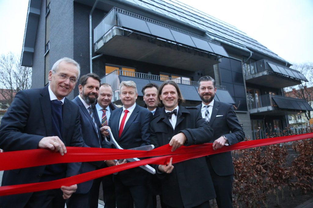 Welchen Stellenwert das innovative Bauprojekt für die Wohnungswirtschaft und die Politik in Zeiten eines dringend notwendigen Klimaschutzes hat, zeigt die Liste an hochrangigen Gästen, die an der Einweihung teilnahmen. Olaf Lies, niedersächsischer Minister für Umwelt, Energie, Bauen und Klimaschutz, der Bürgermeister von Wilhelmshaven Andreas Wagner sowie Heiner Pott, Direktor des Verbandes der Wohnungs- und Immobilienwirtschaft in Niedersachsen und Bremen (vdw), waren in die Bismarckstraße 33 gekommen, um das Mehrfamilienhaus gemeinsam mit der Spar + Bau einzuweihen. „Es soll ein Signal für mehr Klimaschutz in der Immobilienwirtschaft sein und andere Wohnungsunternehmen motivieren, ebenfalls mit Solarenergie CO2 und Primärenergie einzusparen“, betonte Dieter Wohler, Vorstandsvorsitzender der Spar + Baugesellschaft.