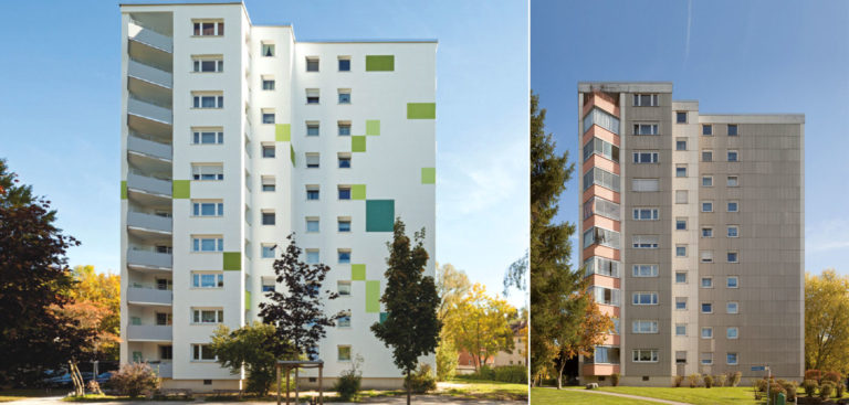 In Kempten ist im Jahr 2013 mit der Sanierung der Punkthäuser Am Augarten begonnen worden. Durch die Lage nahe dem Gebirgsfluss Iller kommt ein Wärmedämm-Verbundsystem zum Einsatz, das der hohen Luftfeuchtigkeit dauerhaft standhält.