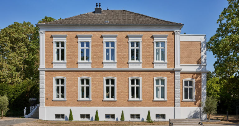 Foto: 1880 als Wohnhaus erbaut, heute wieder ein Schmuckstück mit regionaltypischer Klinker-Fassade: die Villa Grüter in Borken im Münsterland. Mit einer behutsamen Sanierung mit Produkten von Brillux näherte sich Architekt und Eigentümer Jörg Hetkamp dem Originalzustand des Gebäudes an – und erhielt so ein Stück westfälischer Baukultur.
