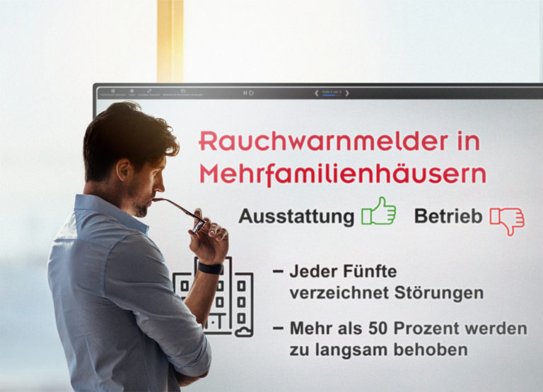 Während die Ausstattung der Wohnungen mit den Geräten als „sehr gut“ zu bezeichnen ist, offenbart deren Betrieb deutliches Optimierungspotenzial. So treten bei einem Fünftel der Befragten Störungen auf, die den Besuch eines Servicetechnikers erfordern. Zudem dauert die Störungsbeseitigung bei mehr als der Hälfte der Betroffenen zu lange, wodurch die Eigentümer ihrer Instandhaltungspflicht nicht nachkommen. Das ist für beide Seite mit Risiken verbunden: Einerseits sind die Bewohner ungeschützt der Brandgefahr ausgesetzt und andererseits stehen Eigentümer in der Haftung, wenn Menschen aufgrund nicht funktionierender Rauchwarnmelder zu Schaden kommen.