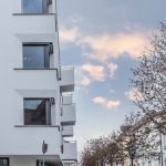 Für das Immobilienunternehmen Fränkel AG haben Manuel Plösser und sein Team von Plösser Architekten aus Friedrichshafen ein fünfgeschossiges Wohn- und Geschäftshaus entworfen, das auf einer Fläche von rund 2.200 Quadratmetern Platz für 32 Wohnungen sowie zwei Gewerbeeinheiten in gehobenem Standard bietet. Bei der Gestaltung legte Plösser Wert auf ein offenes und helles Erscheinungsbild. Aus diesem Grund wertete er zum Beispiel die Fassade mit Engadiner Laibungen – angeschrägten Fenster-Laibungen – auf, die die das Licht zu jeder Tageszeit in einem anderen Winkel auffangen und das neue Gebäude im Zentrum von Friedrichshafen so immer wieder anders aussehen lassen.