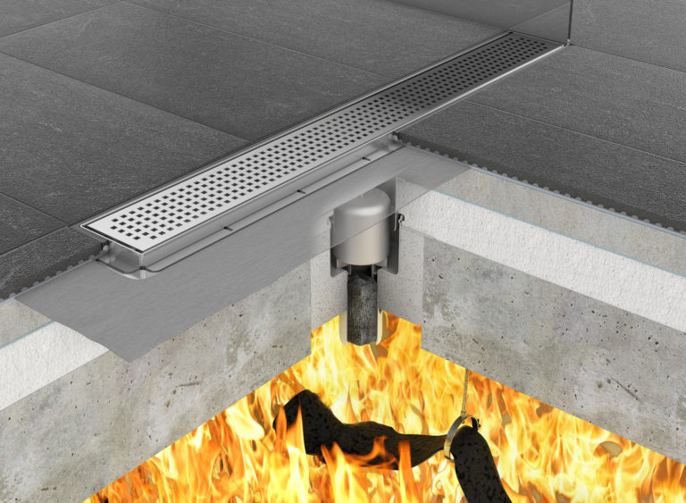 Ein Lehrsatz der Landesfeuerwehrschulen besagt, dass ein Haus immer entlang der Haustechnik ausbrennt: Im Falle eines Brandes können Flammen und Rauch über Rohrleitungen und Bodenabläufe in das darüber liegende Geschoss dringen. Daraus folgt nicht nur, dass die Brandweiterleitung zu den größten Gefahren im Brandfall zählt, sondern auch, dass die Rohre und Systeme der Wasserzu- und -ableitung zu den potentiellen Schwachstellen gehören. Daraus resultiert eine besondere Verantwortung für Entwässerungstechnik – auf die der Entwässerungsspezialist ACO Haustechnik u.a. mit einer Brandschutzausführung der Edelstahl-Duschrinne ACO ShowerDrain E+ reagiert hat.