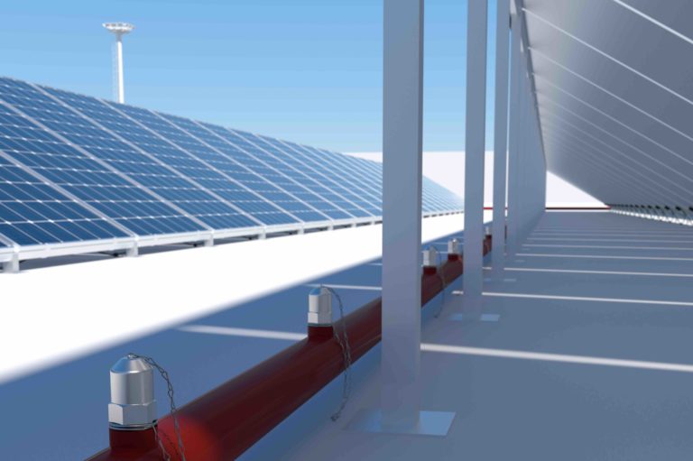 Durch den geringen Wasserbedarf und die niedrigen Betriebsdrücke kann PVProtect in der Regel an die vorhandene Wasserversorgung einer Sprinkleranlage angeschlossen werden. Die Integration in eine bestehende Brandschutzanlage ist daher kostengünstig und unkompliziert möglich.